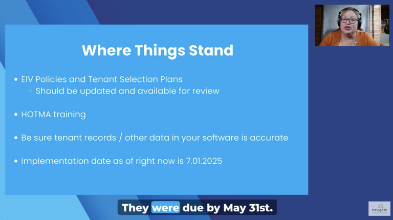 The January 2025 HOTMA Recommendation from Navigate Affordable Housing Partners is to wait until the effective date to implement changes unless otherwise directed. With proper planning, communication, and training, housing professionals can ensure compliance with HOTMA requirements while maintaining high standards of service.